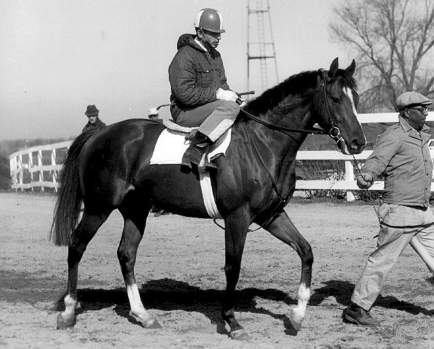 After all, since the Florida Derby was first run in 1953, ten winners have gone to take the Kentucky Derby including Big Brown (2008), Barbaro (’06), Monarchos (‘01), Thunder Gulch (1995), Unbridled (’90), Swale (’84), Spectacular Bid (’79), Forward Pass (’68), Northern Dancer (’64), Carry Back (’61) and Needles in 1956 (photo above). Of those, however, only Big Brown, Barbaro and Needles went directly from the Florida Derby to Kentucky.